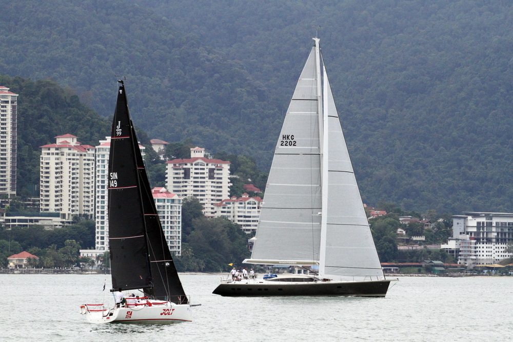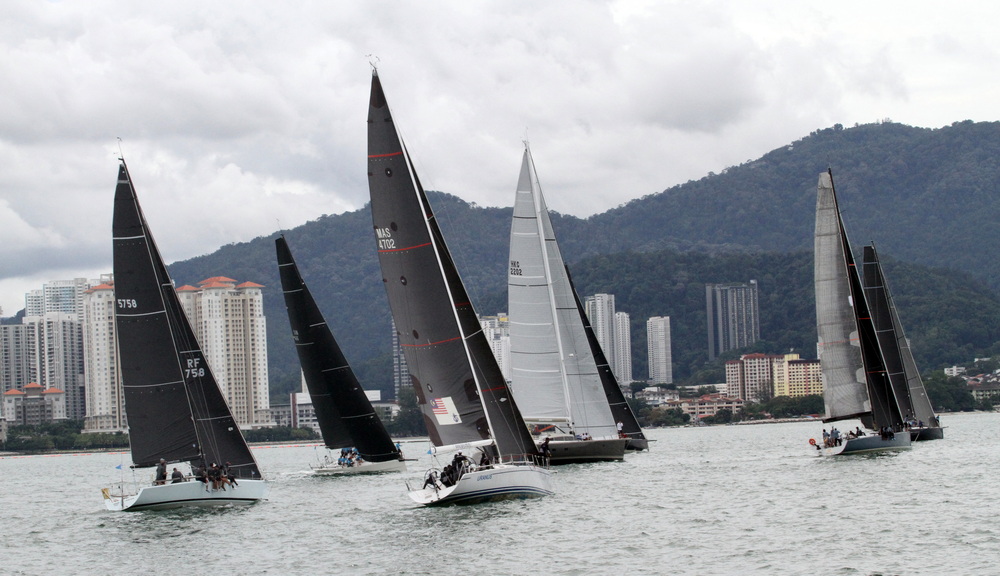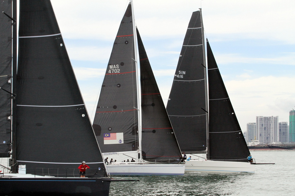 At first, the wind did not want to come out and play for the Penang Inshore race series of the Raja Muda Selangor International Regatta, but PRO Simon James, aka the Wind Whisperer, stuck at it and was able to pull out some gusts from his bag of tricks. At 12:34, Simon dropped the AP, and the third leg of the regatta was underway with the Racing, Premier and Sports classes sailing a two-lap windward-leeward course. He then sent classes 4 and 5 (Club & Cruising) on one long triangle course. Classes one-three got in a second race with classes one & two doing WR5 and class three WR3.